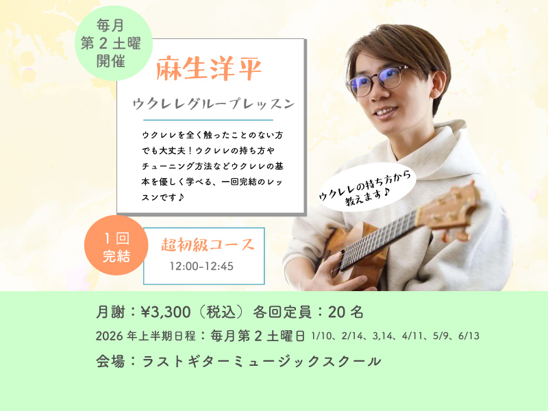 🌼 麻生洋平ウクレレグループレッスン《超初級コース》開講!