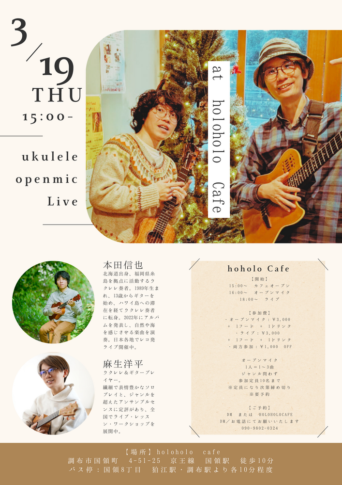 3/19(木)ホロホロカフェオープンマイク&ライブ with 本田信也